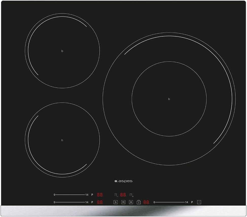Aspes Placa de Inducción Cristal negro AI3601SB32. Potencia máx. 7400 W, 3 Zonas de Cocción, Niveles de Cocción, Control Slider táctil, Función Turbo, Bloqueo y Autodesconexión de Seguridad