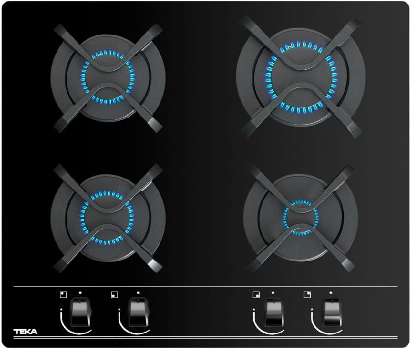 TEKA Placa de Gas 60 cm, 4 Quemadores, Autoencendido y Seguridad Termopar, Parrillas de Fundición, Modelo GBC 64000 KBN