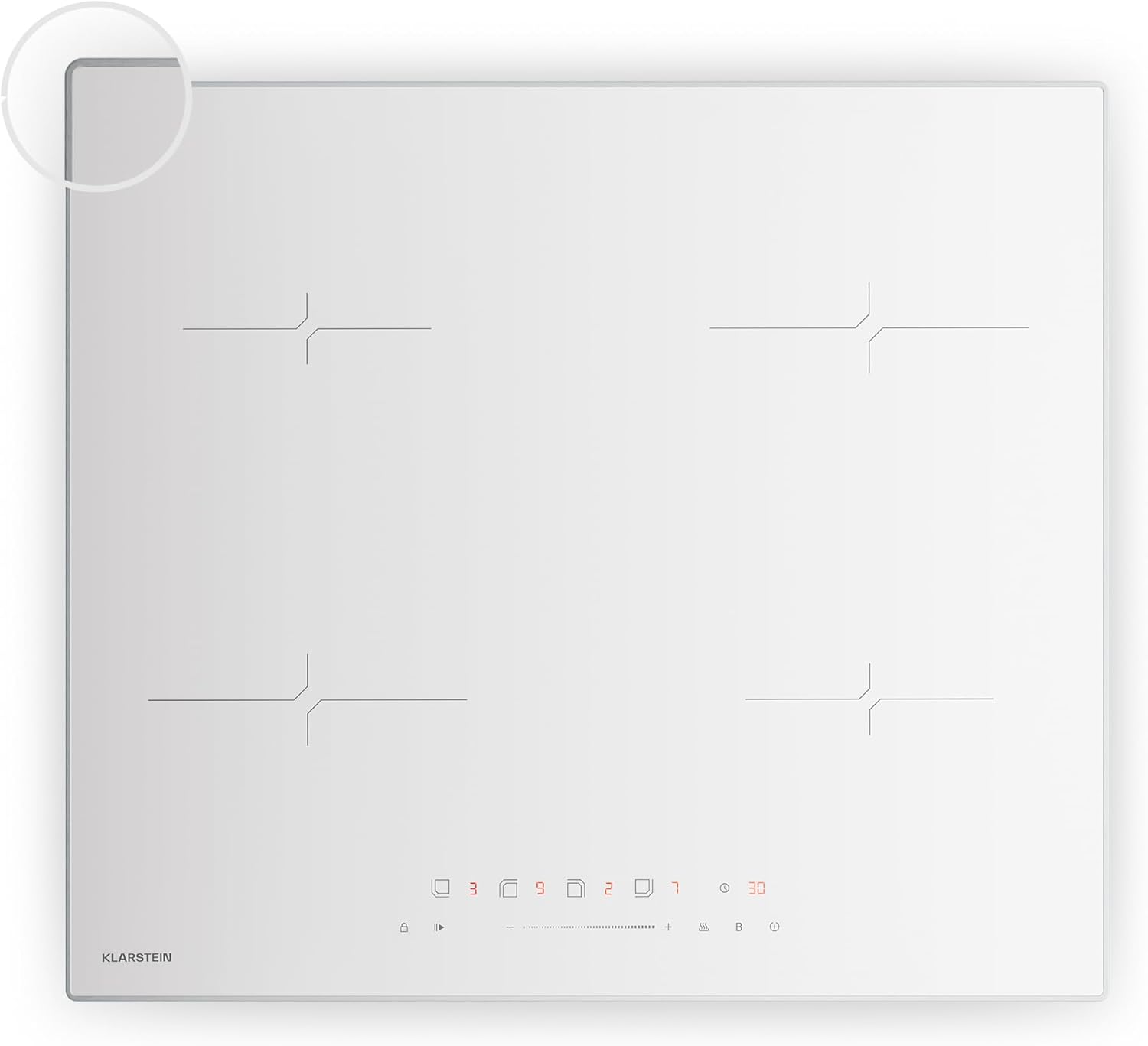 Klarstein Velaire Placa Inducción 60cm - 4 Zonas, 7000W Boost, Control Deslizante Táctil, Temporizador, Bloqueo Infantil, Vidrio Cerámico, Cocina Inducción Moderna, Blanco