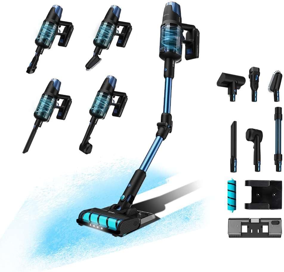 Greenote Aspiradora inalámbrica GSC60 de 480 W33 kPa, 10 en 1, Potente, 50 min de duración, Manguera Extensible, Pantalla táctil LED, antienredos, Apta para Suelos, alfombras y Pelo de Mascotas